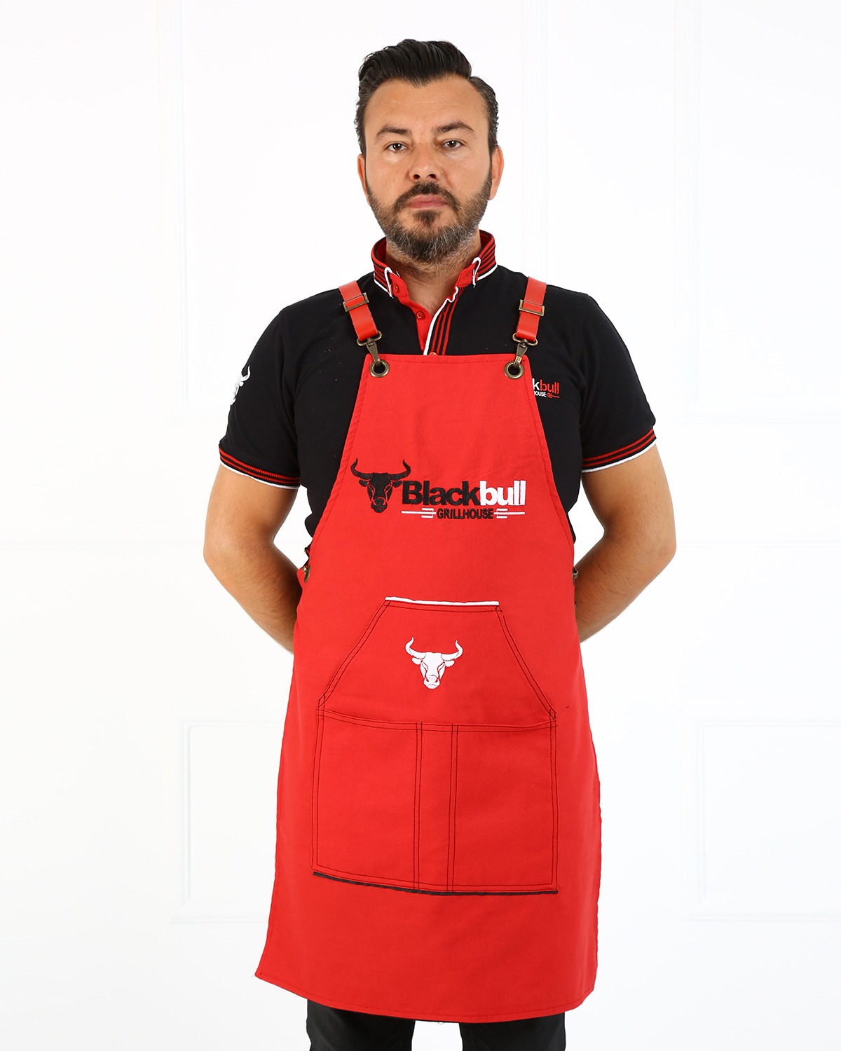 Çift Taraflı Siyah ve Kırmızı %100 Deri Askılı Apron